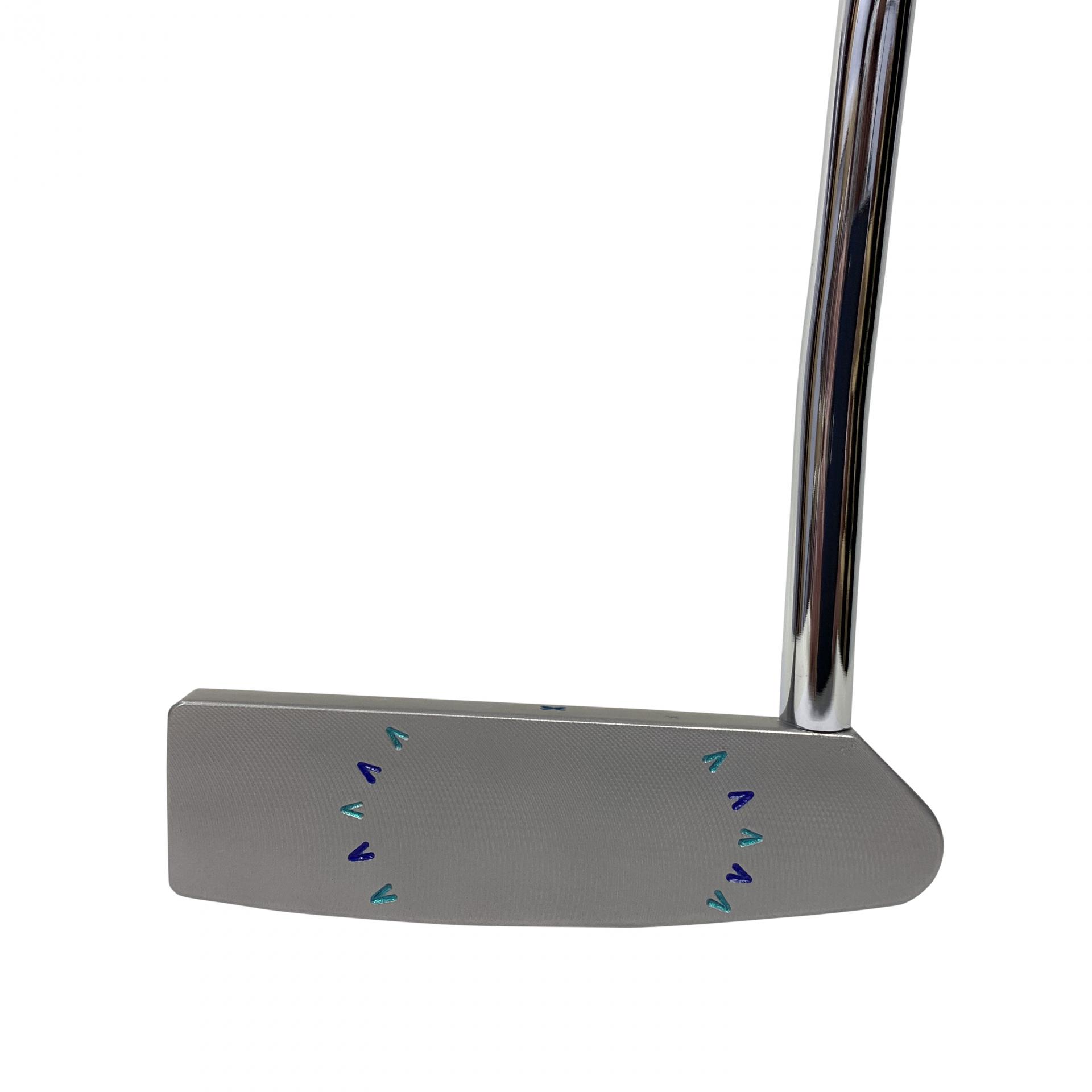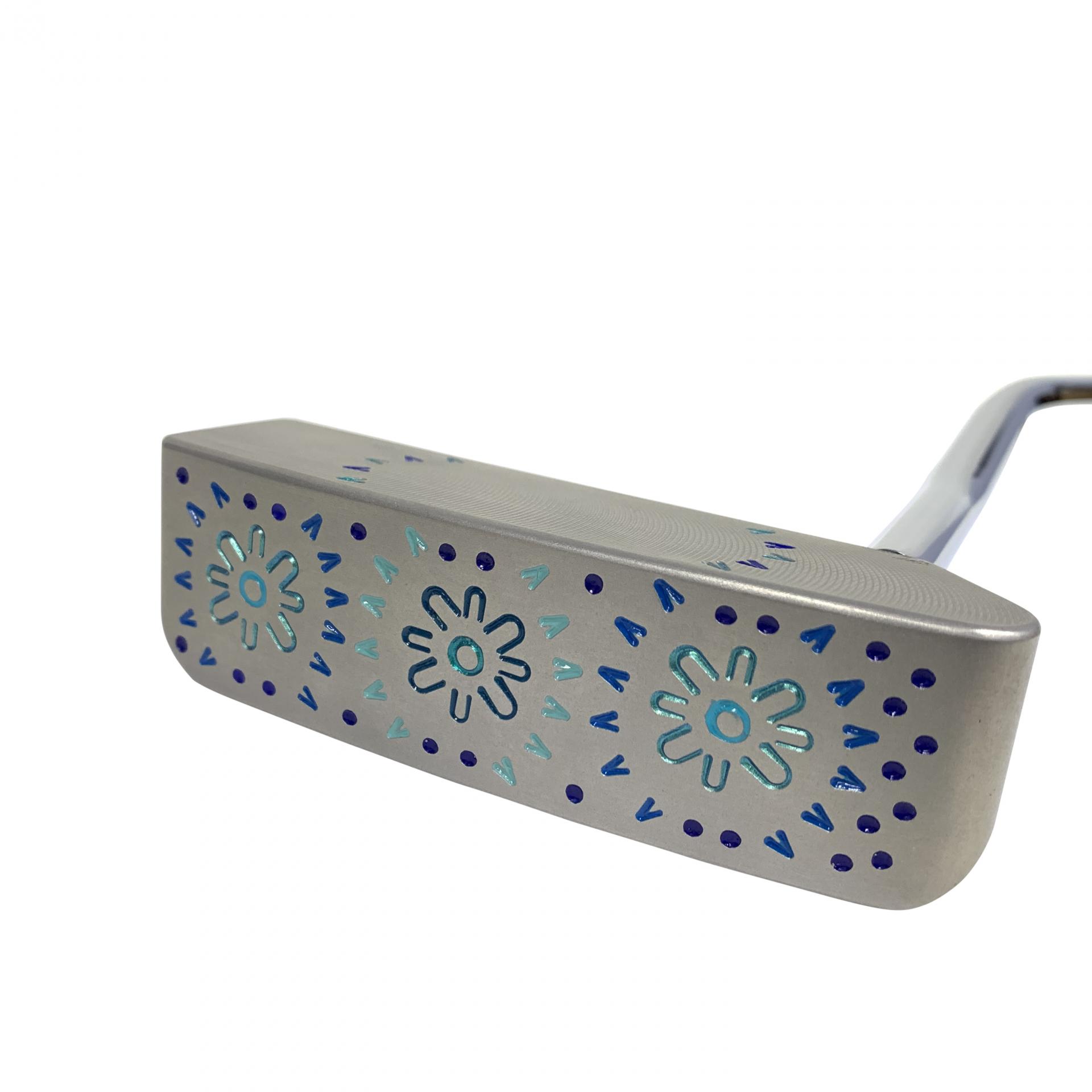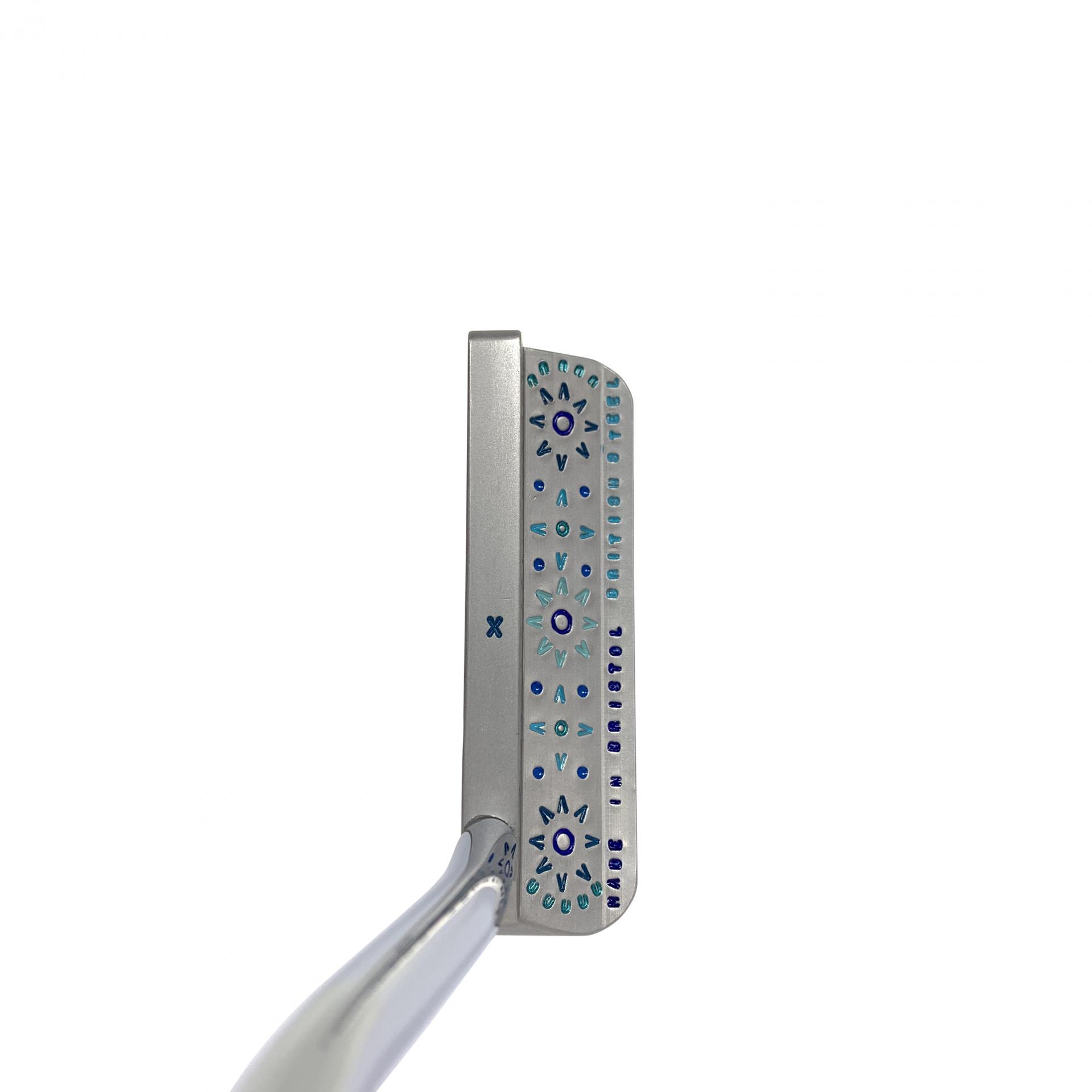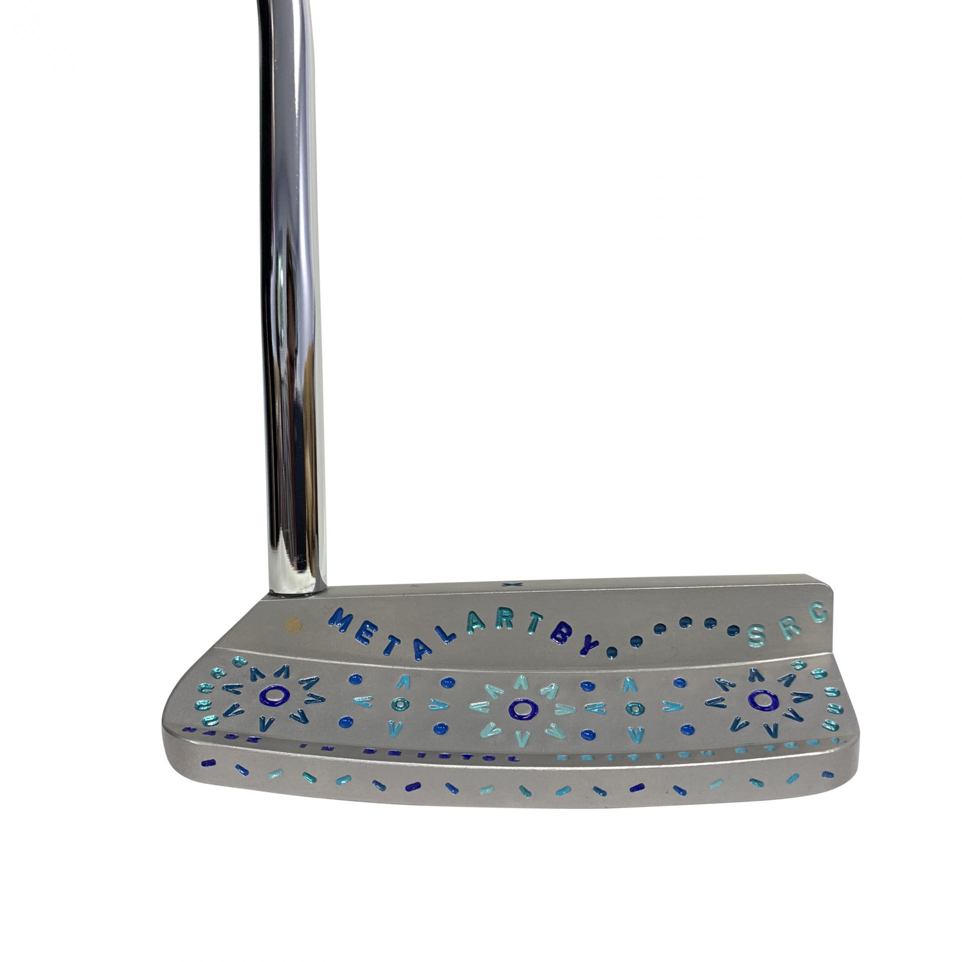 SBG Metal Art Blues hand stamped by Scott, a unique piece. Milled from a single billet of 304 British stainless steel. A perfectly faced balanced putter.