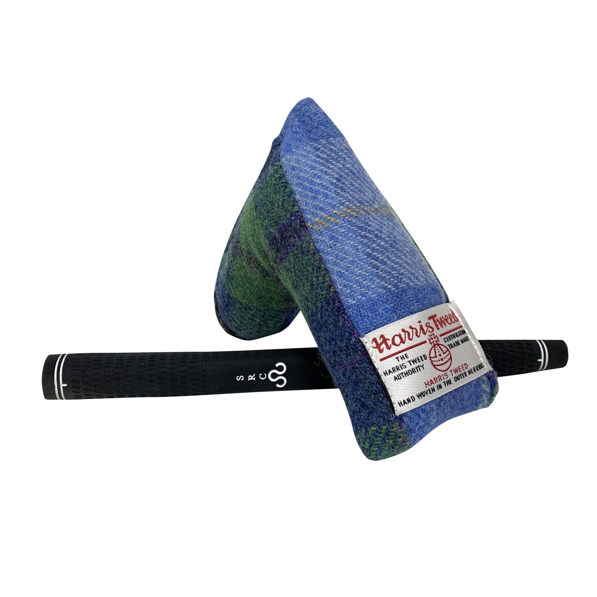 SBG blade hand stamped by Scott, a unique piece. Milled from a single billet of 304 British stainless steel. A perfectly faced balanced putter. Stampings paint filled with hues of greens and blues. Complimented with our signature 3 piece Harris Tweed headcover or choose from the drop down box for other options.
